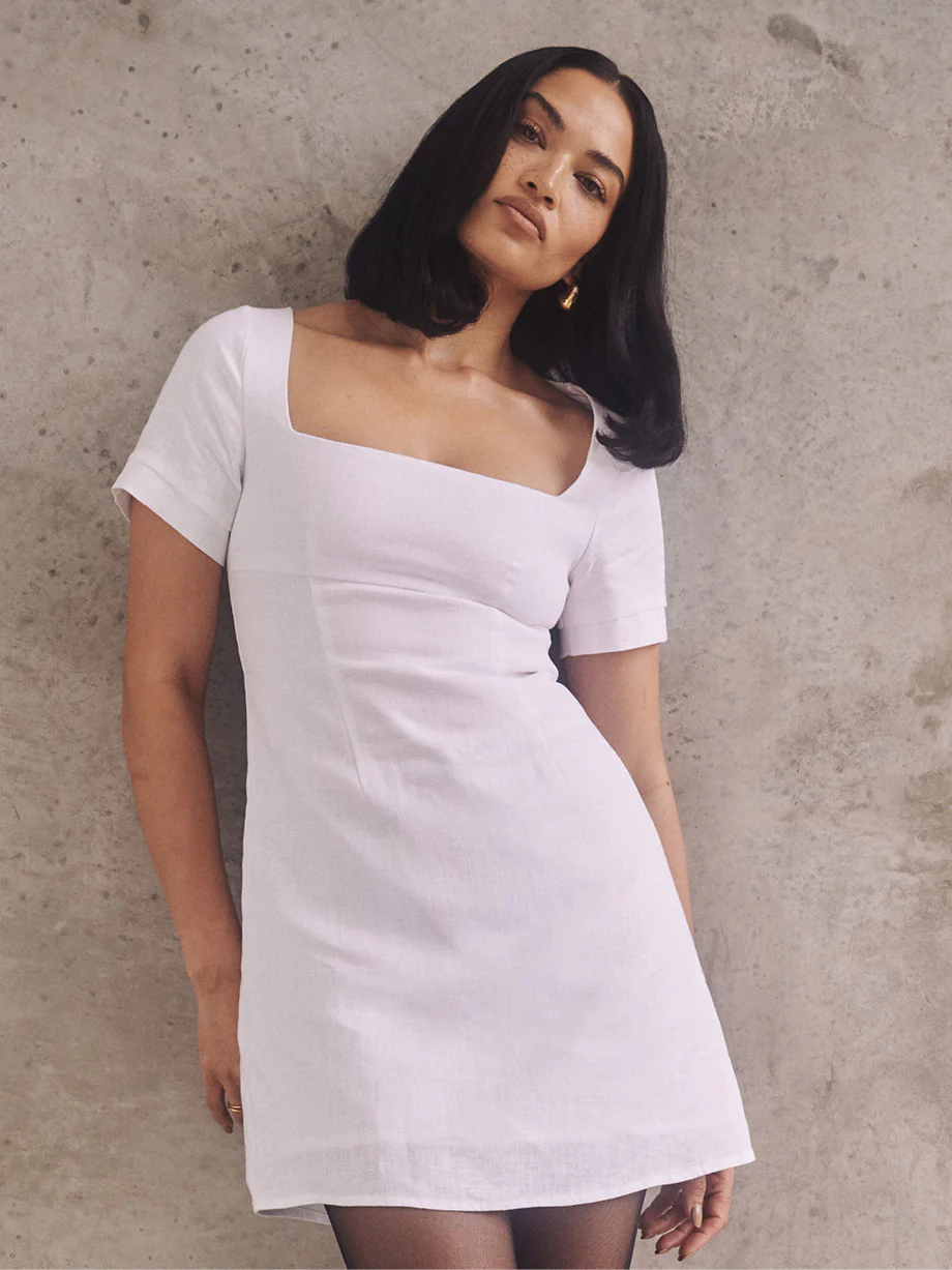 BEAU BLACK LINEN SLEEVED MINI DRESS
